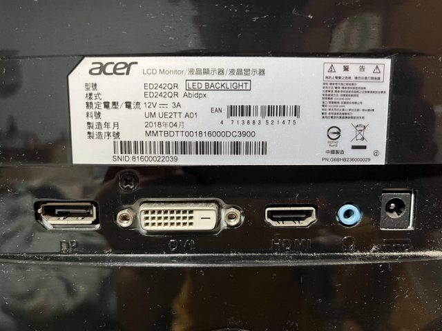 標題[賣/屏東/面交] ACER 24吋144hz曲面螢幕ed242qr