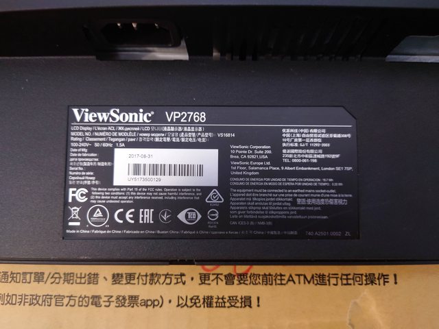 標題[賣/中壢/皆可] ViewSonic VP2768 故障螢幕