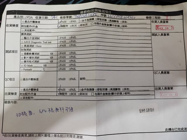 送原廠送修後,告知3D破圖,GPU不良 無料可修