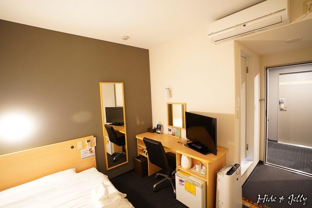 房間內的空間算蠻緊湊的,但對於第一天的住宿來說,不用整理行李還算夠用,床的幅寬