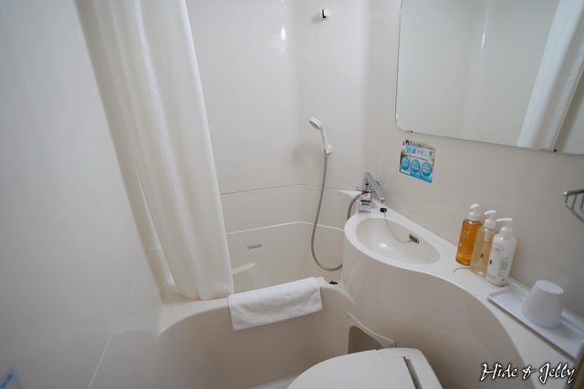 廁所則是很考驗打掃功力的純白色系套裝衛浴,不過因為有溫泉大浴場的關係,我們就沒