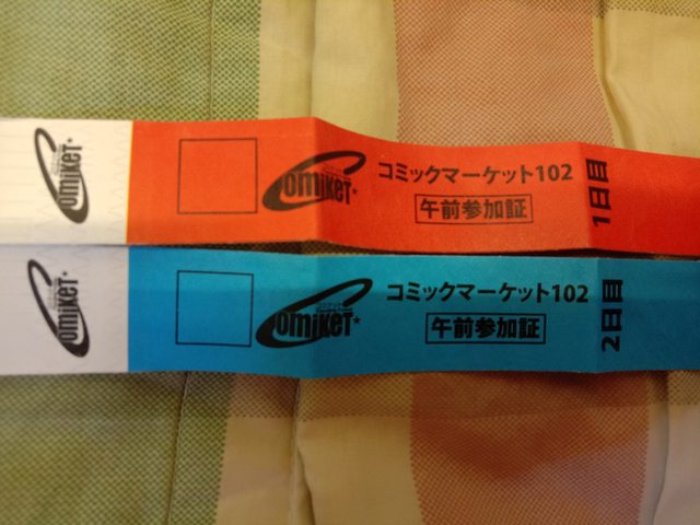 1. 讓售品項:コミケ102入場券(8/12 早上11:00)、(8/13 早上11:00)共兩張票
