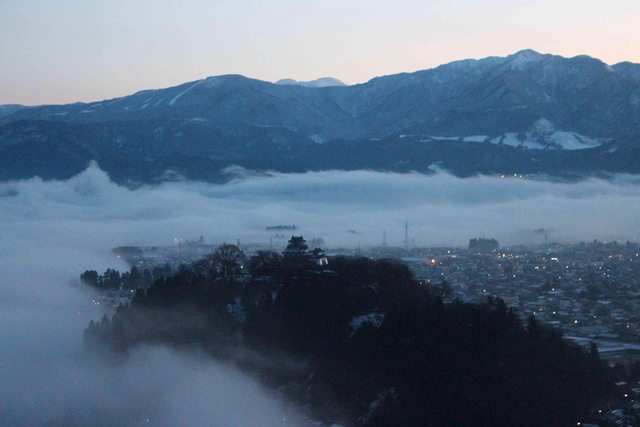 清晨4點半起床5點出發到越前大野城對面山丘拍天空之城