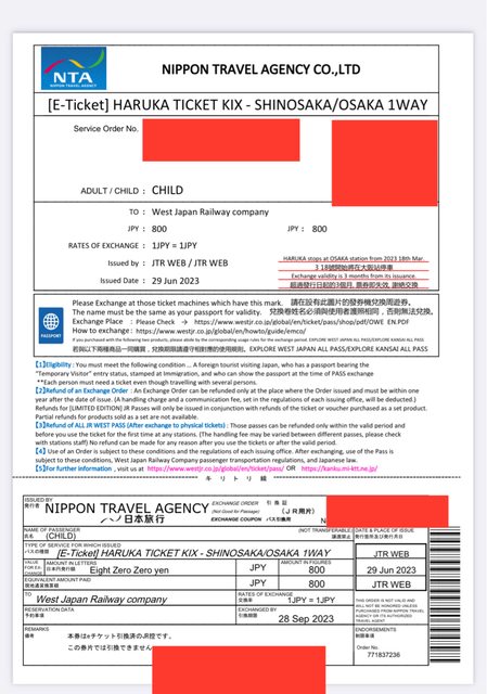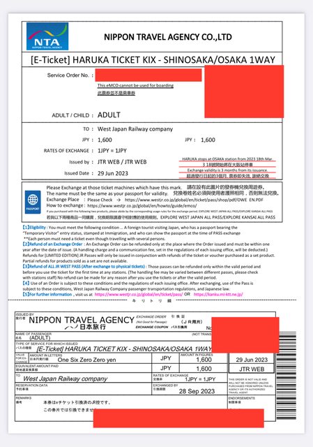 其他說明:七月安排關西兩周旅遊,但暴雨影響行程改自駕,所以部分票券尚未使用,現
