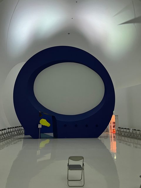 首先會進入一個影音大廳。偌大的空間稀稀落落地擺了幾張折疊椅,當中只坐了我一個遊