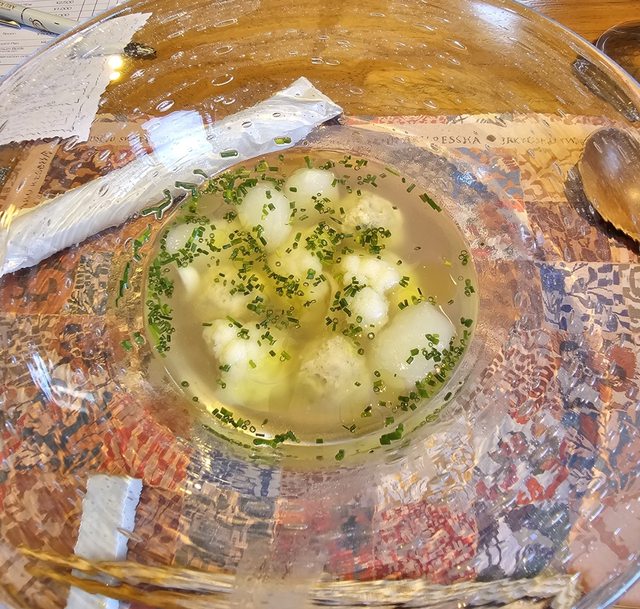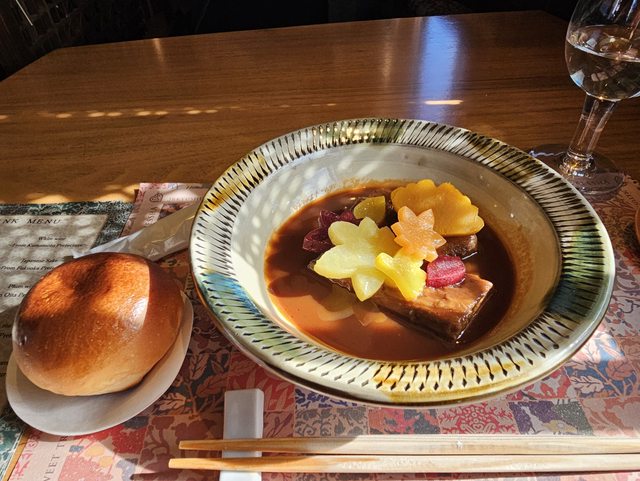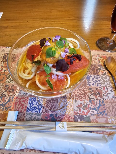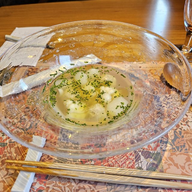 外國人菜單就是全英文,但老實說給日文的對我們台灣人來說,反而會比較容易看吧XD 服務生有的英文很流利,以我洛杉磯打混10幾年的聽力來說,聽不出有什麼口音 就是台灣人一定可以聽懂的清晰美國腔,全程用英語溝通也不會有問題 也有講的比較沒那麼順的,我是就跟她說直接講日文ok 前菜,這道還不錯,就是米其林1~2星餐廳常會吃到的那種花俏口感