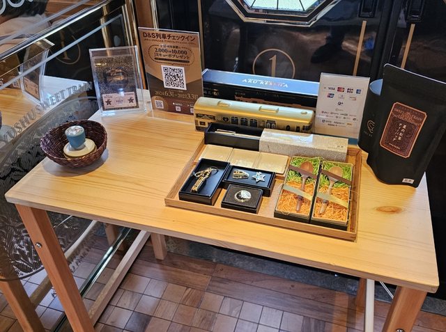 酒水的話,酒我基本上是都喝了1~2輪 當時是有一些感想的,但現在已經忘的差不多了XD,還是先不寫了 再來紀念品部分 一踏進車廂就可以看到商品展示