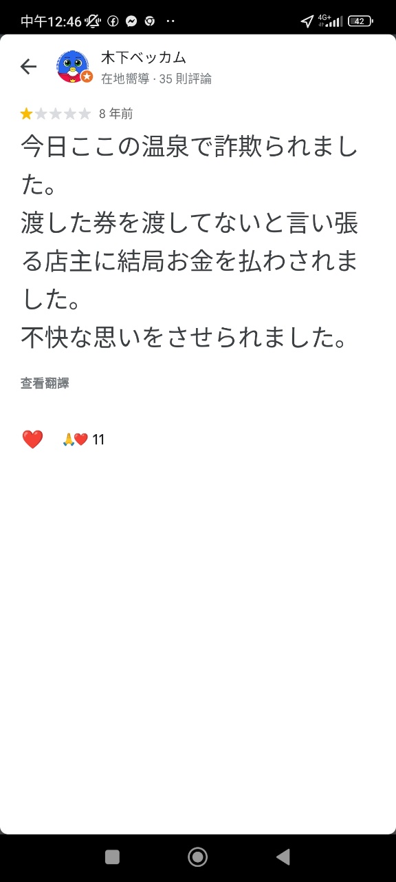 有做啊,所以才在泡湯前再次確認啊!(加上本來就決定要去過夜了)怎知道網路評價是完