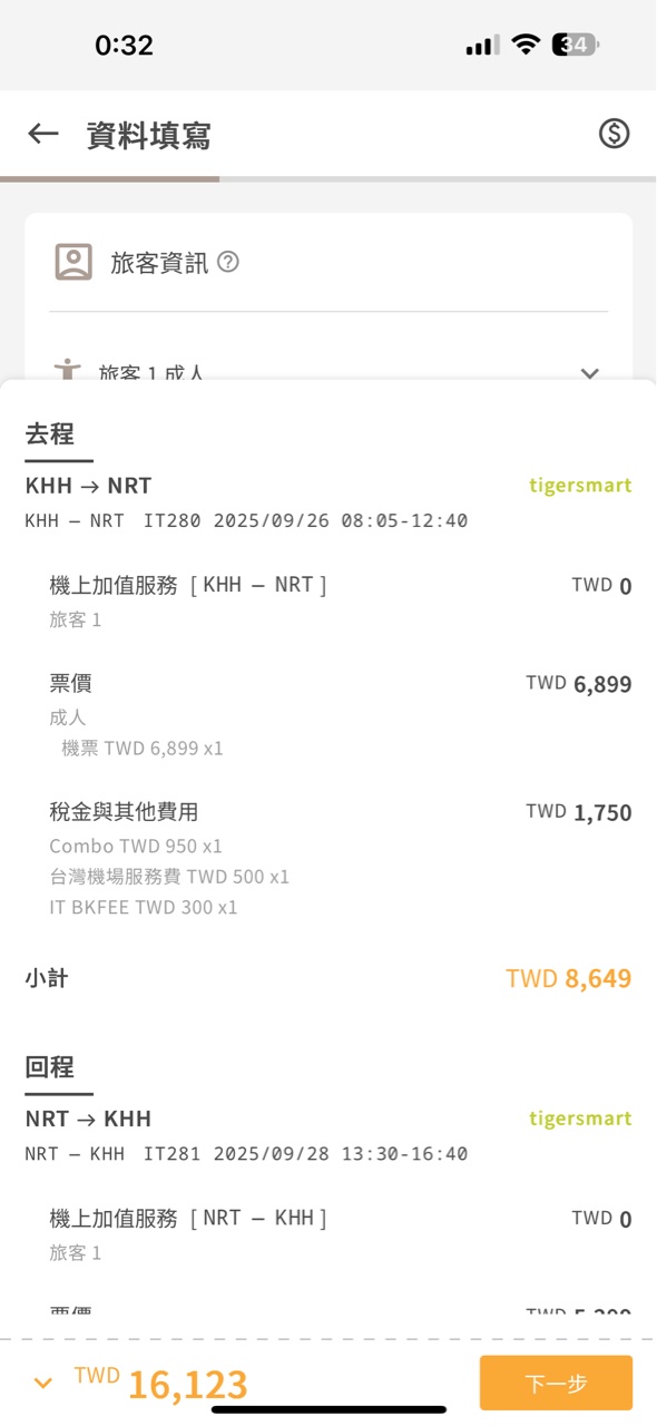 → TSMCfabXX : 剛查了一下四月中買過的 8月平日 IT216 05/23 10:14