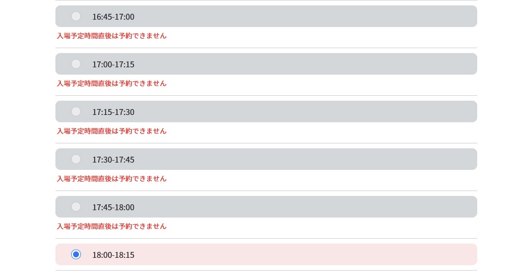 像是我有中19:20-19:30的大阪健康館,這個時段的前後一小時沒辦法預約,又加上夜間