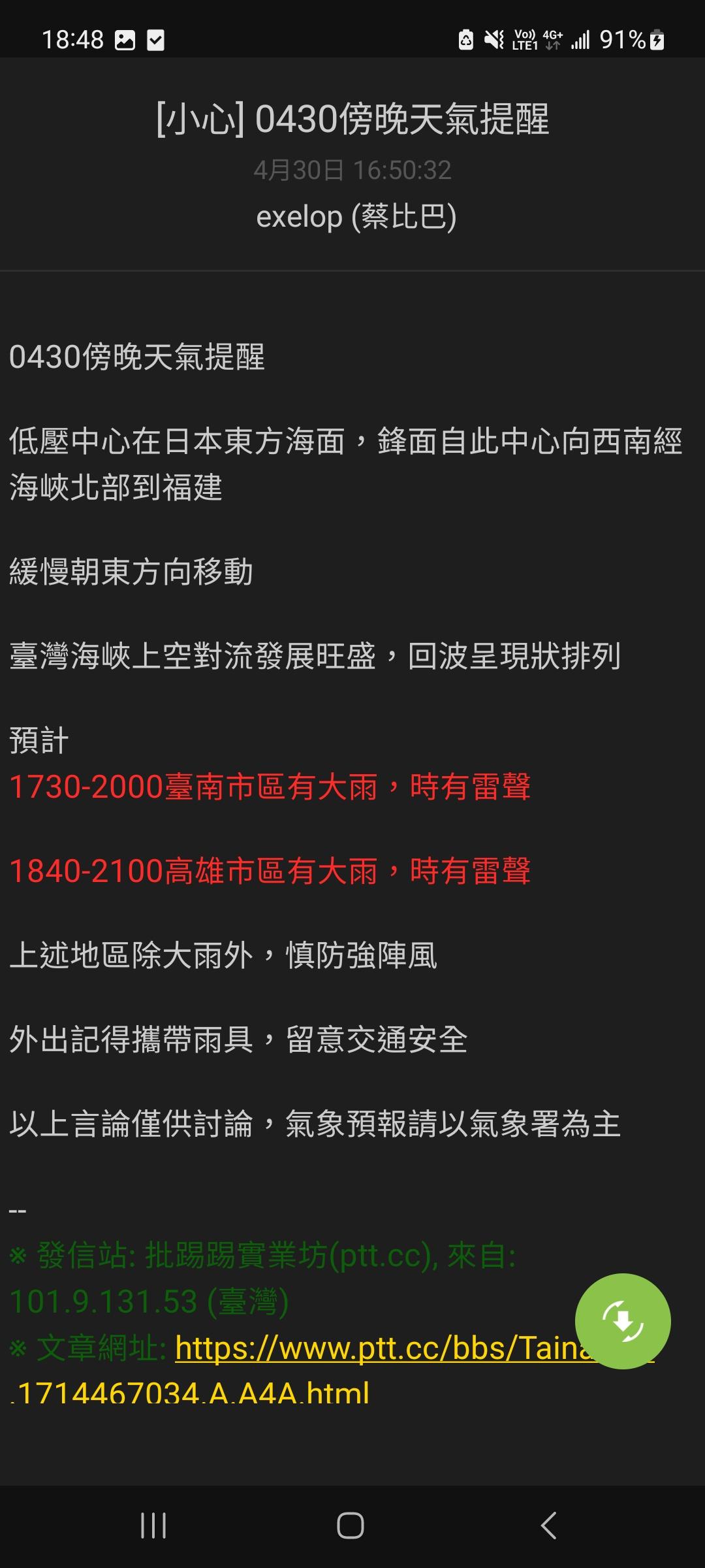 → lighten28: 這天氣只希望大家平安就好 04/30 18:51