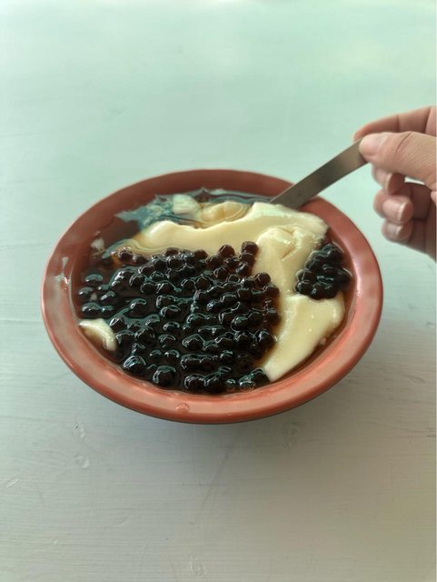 後來看到一家豆花店,很多台南鄉親騎車來外帶