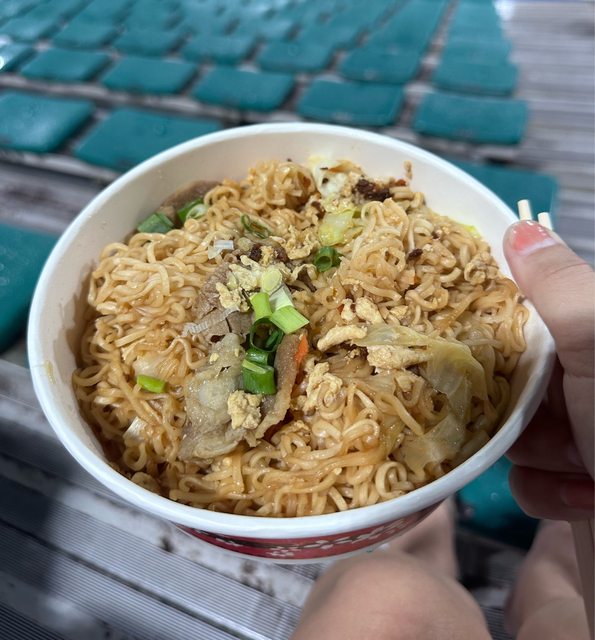 下班去球場很趕,晚餐就吃球場內的炒泡麵