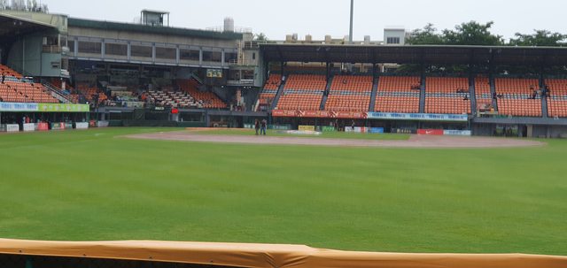 忘記幾點拍的, 那時還是一直在滴雨, 場上好像還沒開始整理