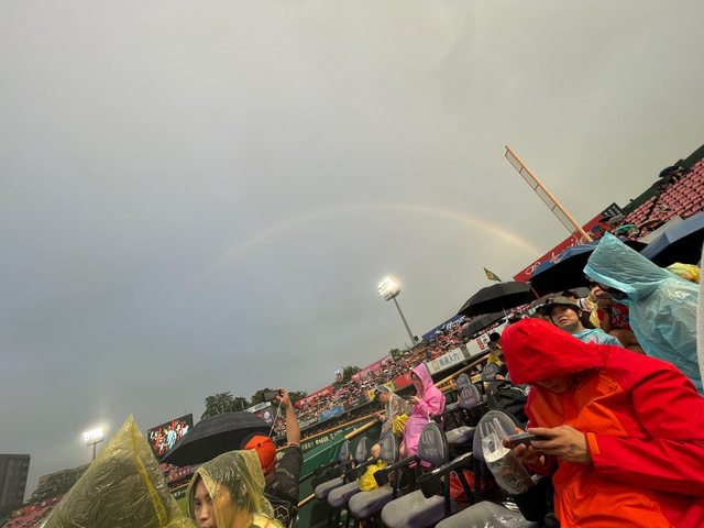也讓球迷們更甘願地冒雨繼續等待。