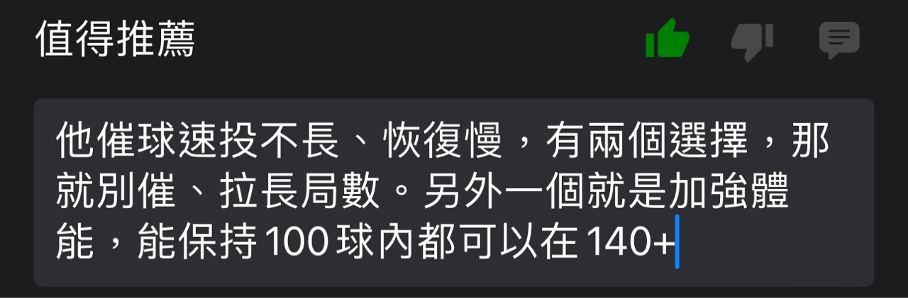 → hsr7016: 大學大約140中盤 進統一改揮臂後球速又加快2-3KM 06/02 23:35