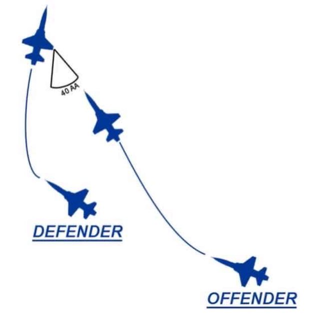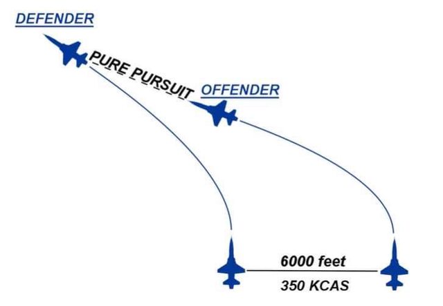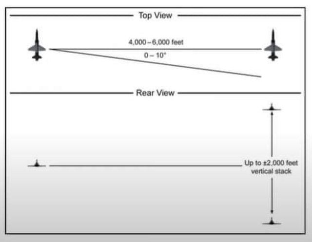 兩機先設定好兩者之間的距離,通常是3k、6k或9k,單位是呎,攻擊者會平行或略落後防
