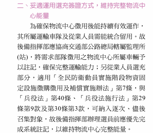 推 afv : 這篇文章講的是完整徵用整個物流公司,避免現行車、 06/28 22:17
