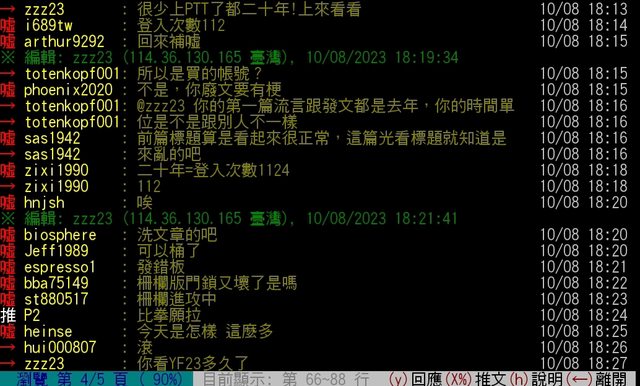 zzz23經獲檢舉被懲處人與看板上發布鬧板文