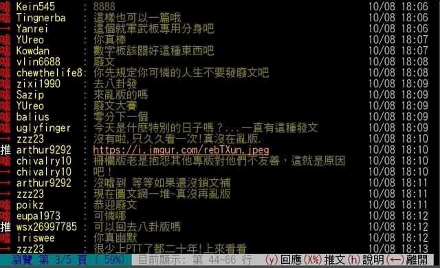 4-5.發表無意義文章或推文與洗板行為視為鬧板。