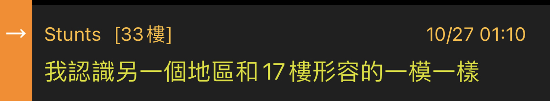 → Stunts : 我認識另一個地區和17樓形容的一模一樣 10/27 01:10