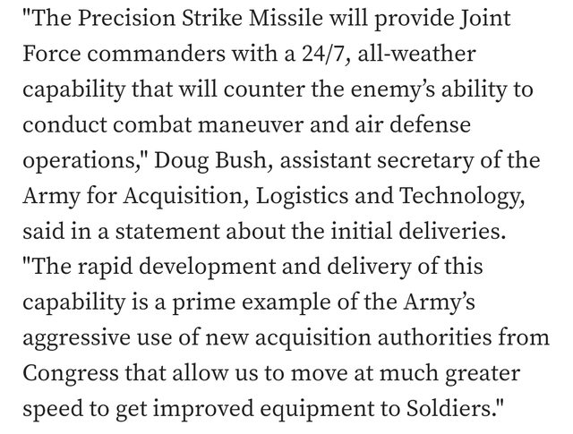 標題[分享] 美國陸軍收到第一批可投入使用的PrSM飛彈
