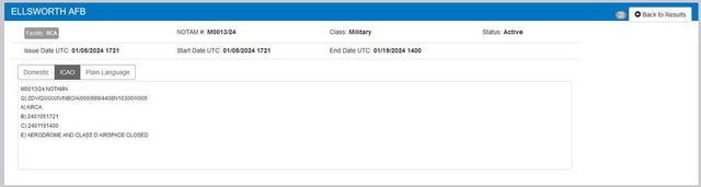 表示基地以及上方的D級空域仍然維持關閉至1月19日到期