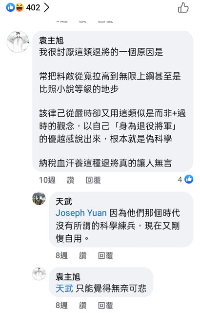 → hsinhanchu : 將官有這種認知,比起跳下去跟中尉連長搶工作更慘 01/13 18:44