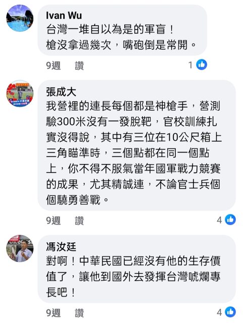 推 bigsun0709 : 黃埔老人當然希望你打越少越好,槍法不準以後碰到共 01/14 16:30
