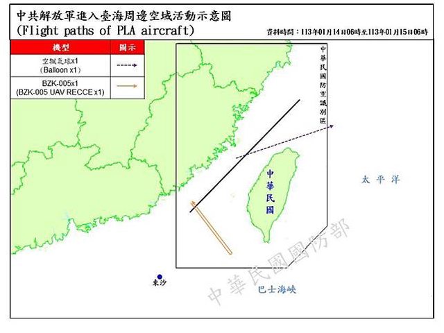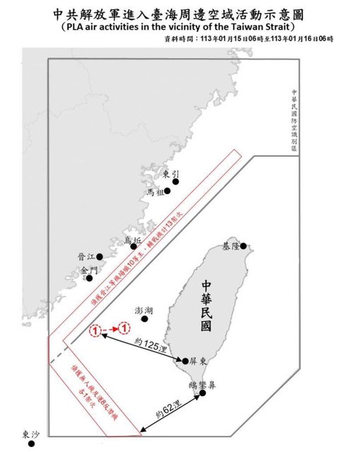 → jobli : 入台海周邊空域活動示意圖」今天改版,中國軍機襲擾 01/16 12:25