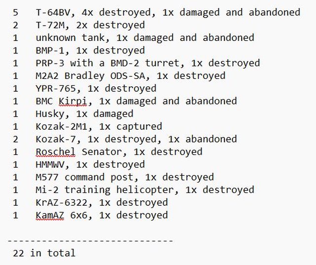 目視確認損失軍事裝備統計 2024.09.03 ~ 09.05