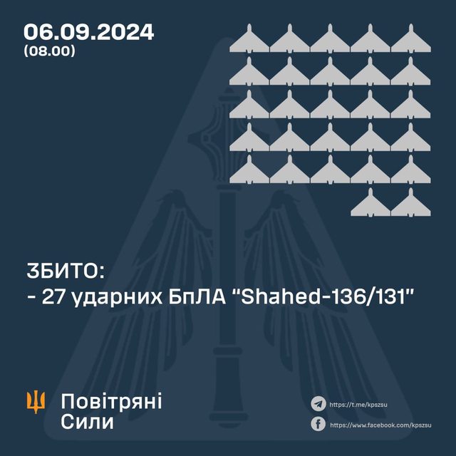 防空系統擊落 27 架,另有 8 架因電戰措施