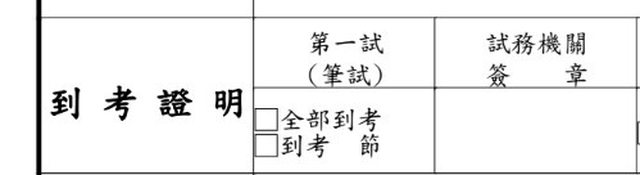 如圖所示,我參加的國考到考證明並非全部節數都要到考才能蓋章,