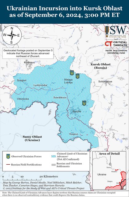 截至9 月6 日,烏克蘭軍隊正在庫斯克州約