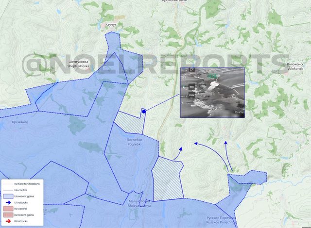 2.根據地理定位鏡頭,烏軍在 Pogrebki 以北