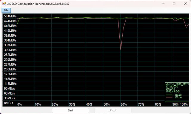 ▼Micron 5200 PRO SATA3 1.92TB SSD的AS SSD Compression-Benchmark傳輸速度測試