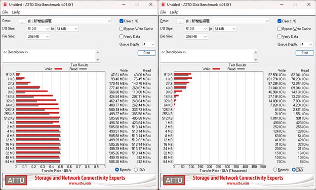 近規格標示540MB/s,寫入測試528MB/s超過規格標示520MB/s,RND4K Q32T1的IOPS讀取測