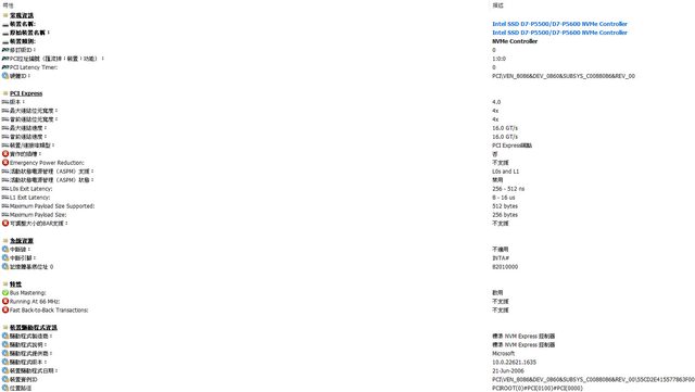 ▼匯流排硬體資訊內容,Intel D5-P5530 U.2 Gen4 NVMe 1.92TB SSD以PCIe 4.0 x4連接