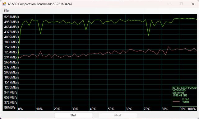 ▼Intel D5-P5530 U.2 Gen4 NVMe 1.92TB SSD的AS SSD Compression-Benchmark傳輸速