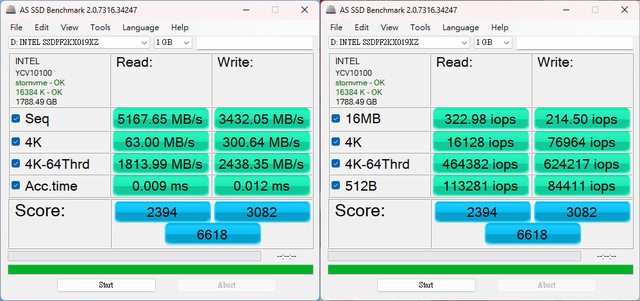 ▼Intel D5-P5530 U.2 Gen4 NVMe 1.92TB SSD的AS SSD Benchmark測試