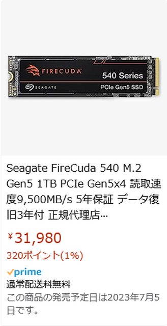 FireCuda 540 PCIe Gen5 SSD 蹤跡出現在美國 B&H 與 Amazon 英國網站,看來