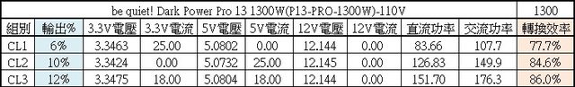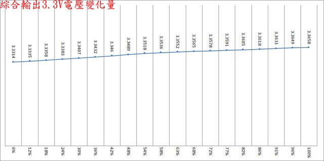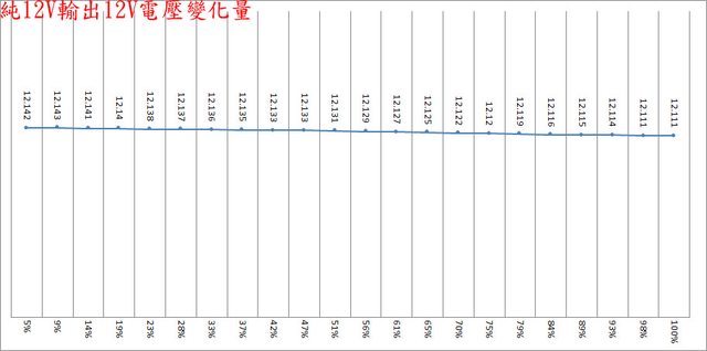 綜合全負載輸出下12V/5V/3.3V各路低頻漣波分別為17.6mV/11.6mV/7.2mV;於純12V全負