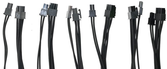 ▼6條顯示卡電源黑色傘繩編織線模組化線路,1個電源端12P插頭分出2條線,提供6個