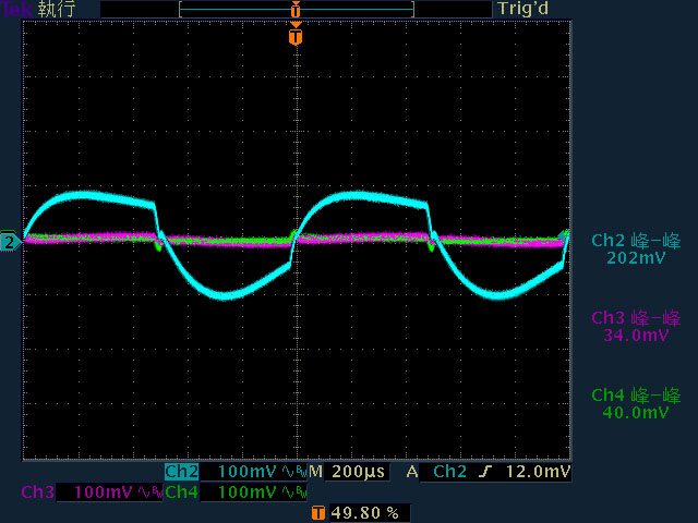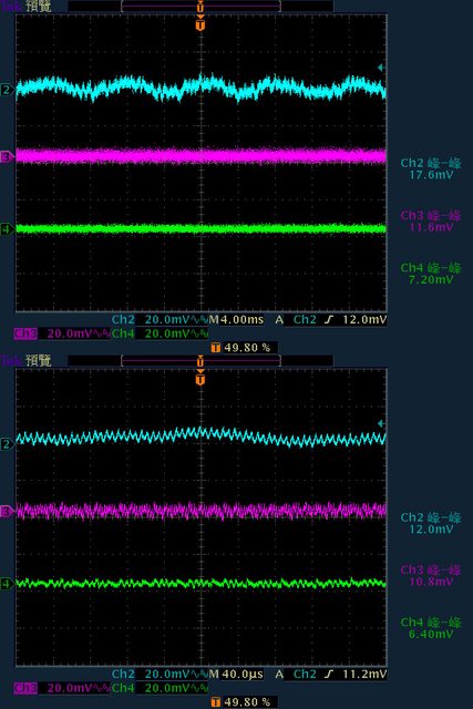 載輸出下12V/5V/3.3V各路低頻漣波分別為17.6mV/13.2mV/5.6mV