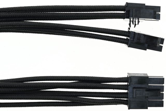 ▼2條12VHPWR模組化線路的插頭連接處近照