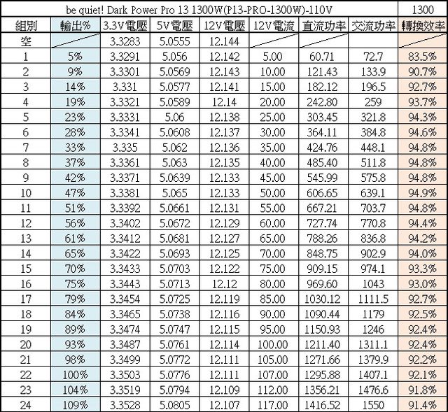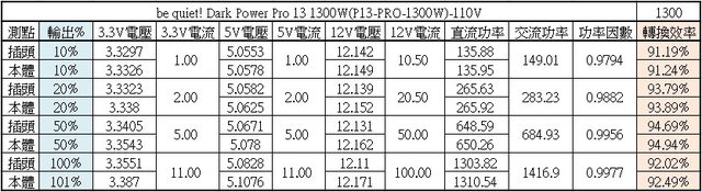○10%/20%/50%/100%輸出轉換效率分別為91.19%/93.79%/94.69%/92.02%,符合80PLUS鈦