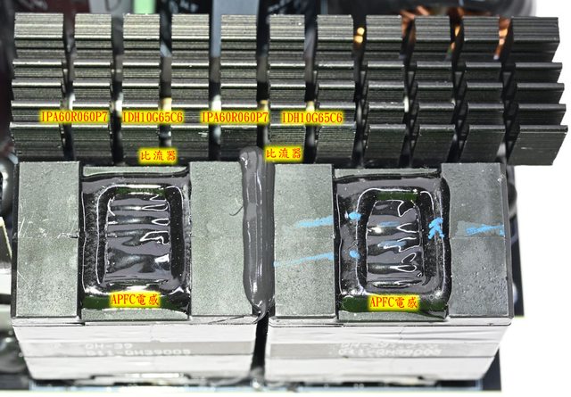 ○APFC MOSFET/二極體使用Infineon,半主動整流MOSFET使用onsemi,一次側MOSFET使用