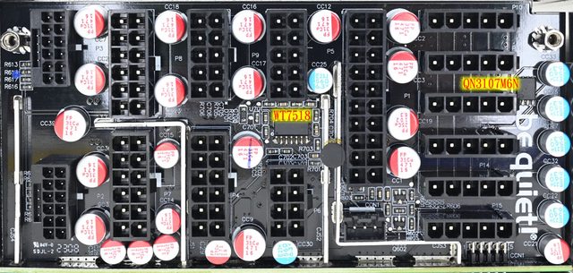 EPS 4+4P、1個EPS 8P、2個600W 12VHPWR、6個PCIE 6+2P、16個直式SATA、5個省力易拔