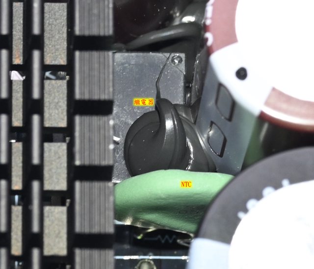 ○交流輸入插座與總開關有安裝金屬支架,後方安裝電路板。總開關不直接控制交流輸入