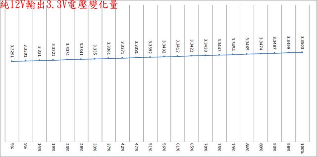 ○偏載測試,12V維持空載,測試3.3V滿載、5V滿載、3.3V/5V滿載的3.3V/5V/12V電壓變